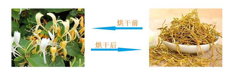 当金银花烘干机对金银花脱水干燥的时候,湿度较大的金银花经由皮带输送机运送至烘干箱内,这时候燃烧炉内所产生的热量从同一端进入筒体内部,与高湿物料形成接触,使其表面的水分蒸发干燥。